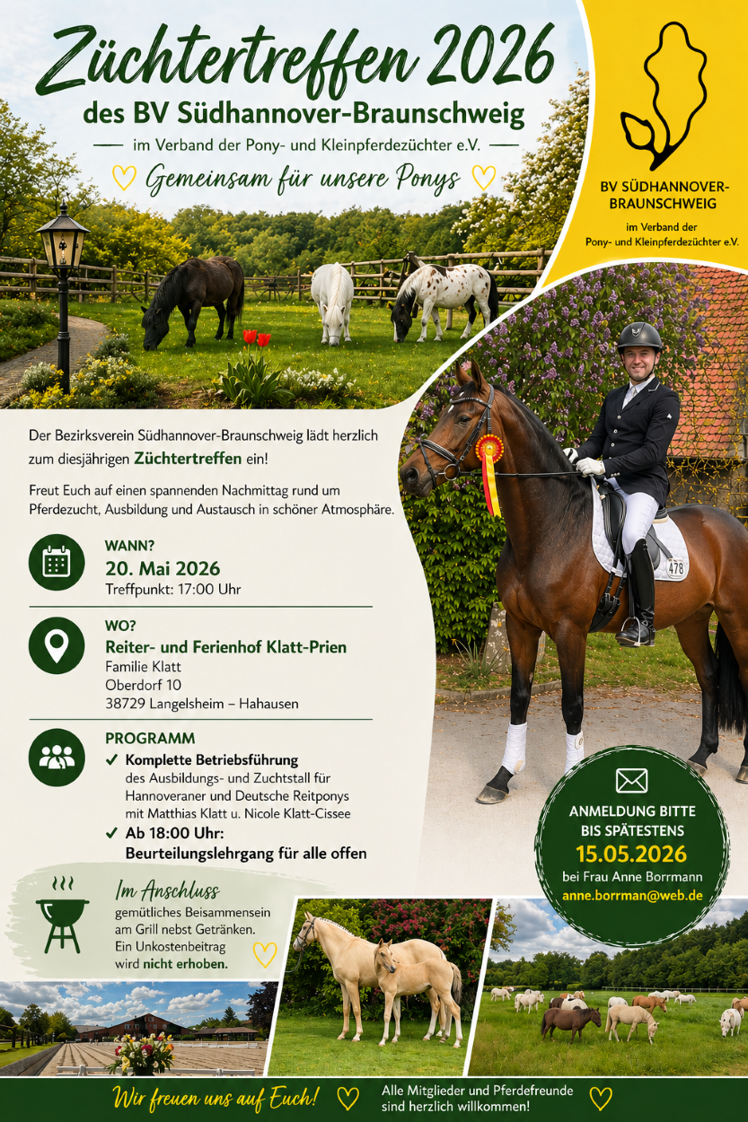 Weiterlesen ...Ausschreibung 14. Landesponyschau – Verden – 09. August 2026