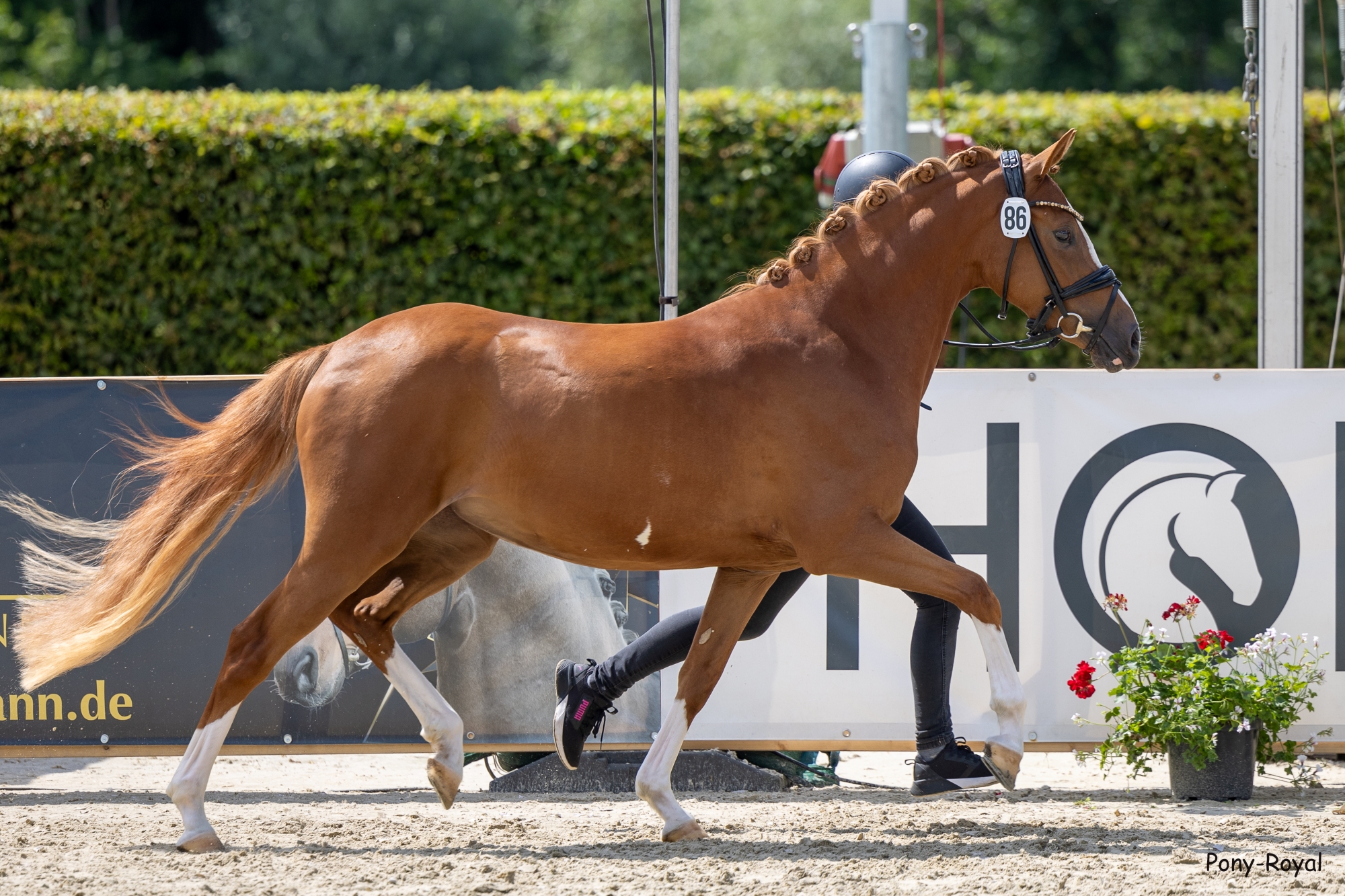 dressurbetonte Stuten (Reitponywettbewerb) in der Altersklasse I (drei- und vierjährige Stuten) mit der Reiterin Carolin Missere auf Platz 6platzieren.