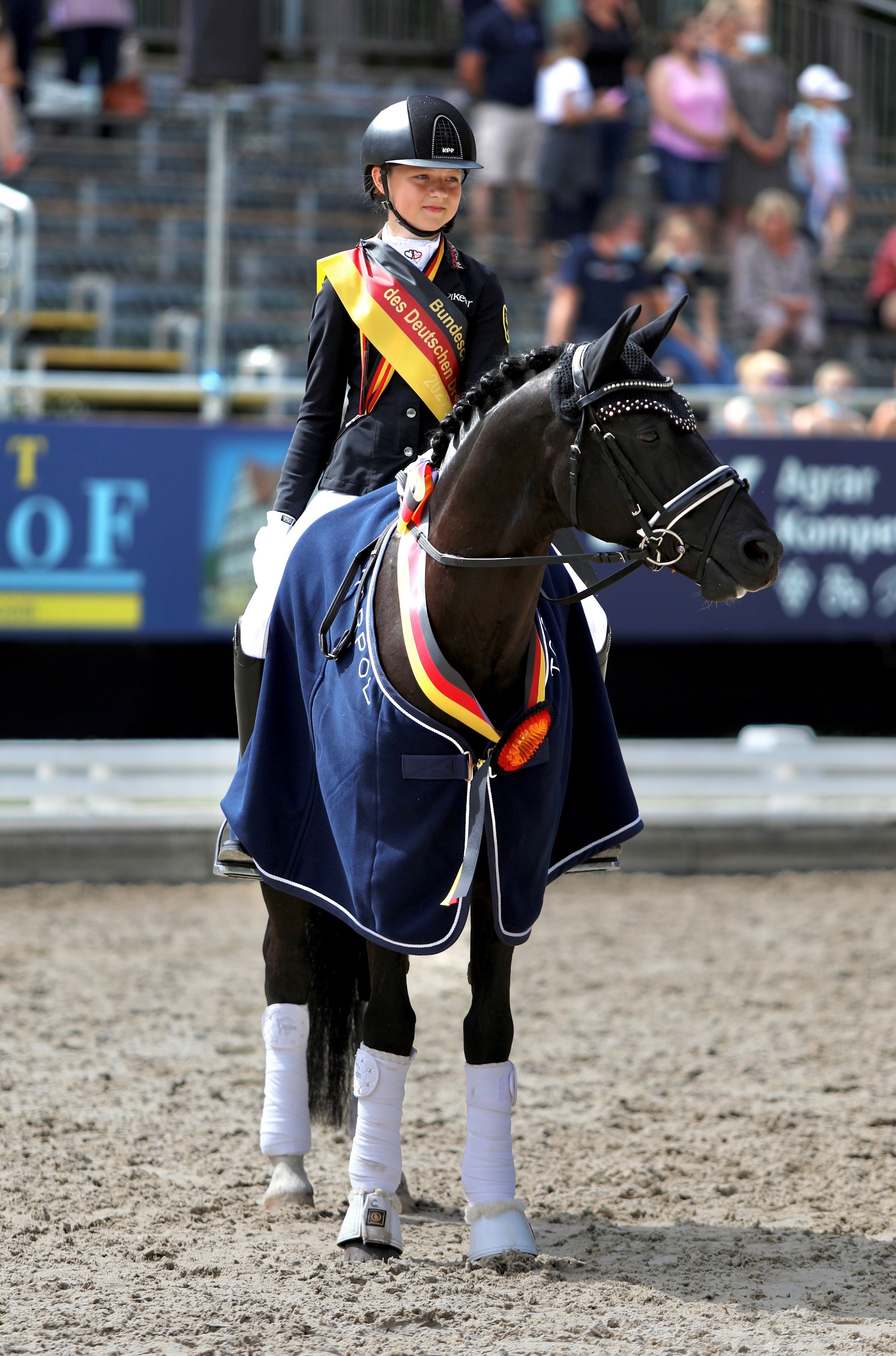 Vor ihm als Bundeschampion platziert war „D-Gold AT“ von Dreidimensional AT / Dimension AT aus der Zucht von A. T. Schurf, Bedburg. Er war Körungssieger 2018 in Verden und Bundeschampion der 3-jährigen 2019.