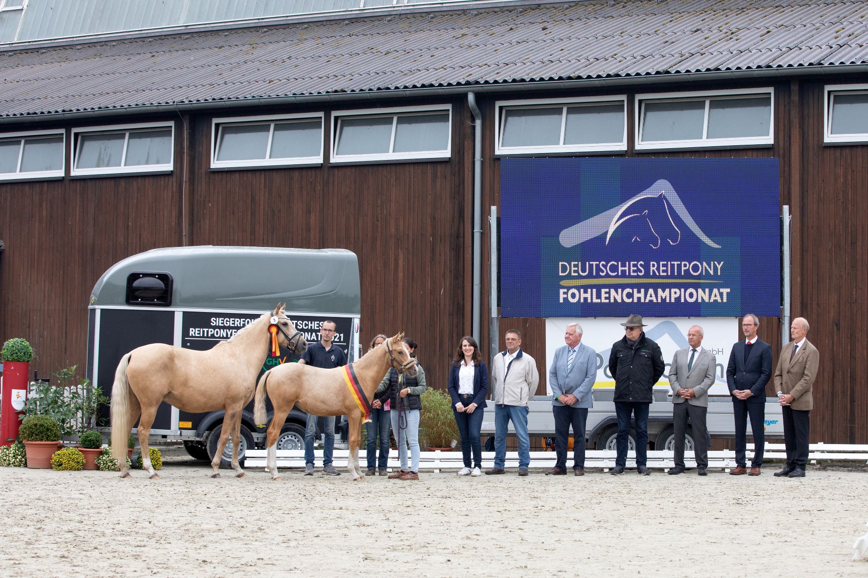 Die Freude bei Züchterin Madlen Blunk war riesengroß, als ihre beiden wundervollen Ponys – denn auch die Mutterstute Donita hinterließ einen bleibenden Eindruck – vor der großen LED-Wand und dem nagelneuen Ehrenpreis, einem Humbaur-Pferdeanhänger, Aufstellung nahmen und viele Gratulanten in der Reihe standen!