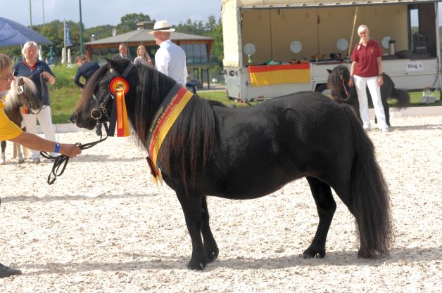 Ebenso präsentierten unsere Züchter auf der FN-Bundesstutenschau für Robustponys in Bad Harzburg ihre Stuten mit Erfolg. Als Resumee können sich die Züchter mit Stolz nicht nur über zwei Bundessiegerstuten (Giersbergs Jacinta v. Discovery af Jäboruder x Zeoliet v.d. Zandhoeve bei den drei- bis sechsjährigen Shetland Ponystuten sowie Britania v. Clus v. Grande x Jo-Co’s KC Coyne Connection bei den Dt. Classic Ponys) sondern auch über zwei Bundesreservesiegerstuten (Kiki von der Faehr v. German B x Schalenburgs Twister bei den drei- bis sechsjährigen Shetland Ponystuten < 87 cm sowie bei den Dt. Classic Ponys Best May v. Clus v. Jo-Co’s KC Coyne Connection x Billy) und über eine Bundesreservesiegerfamilie freuen.