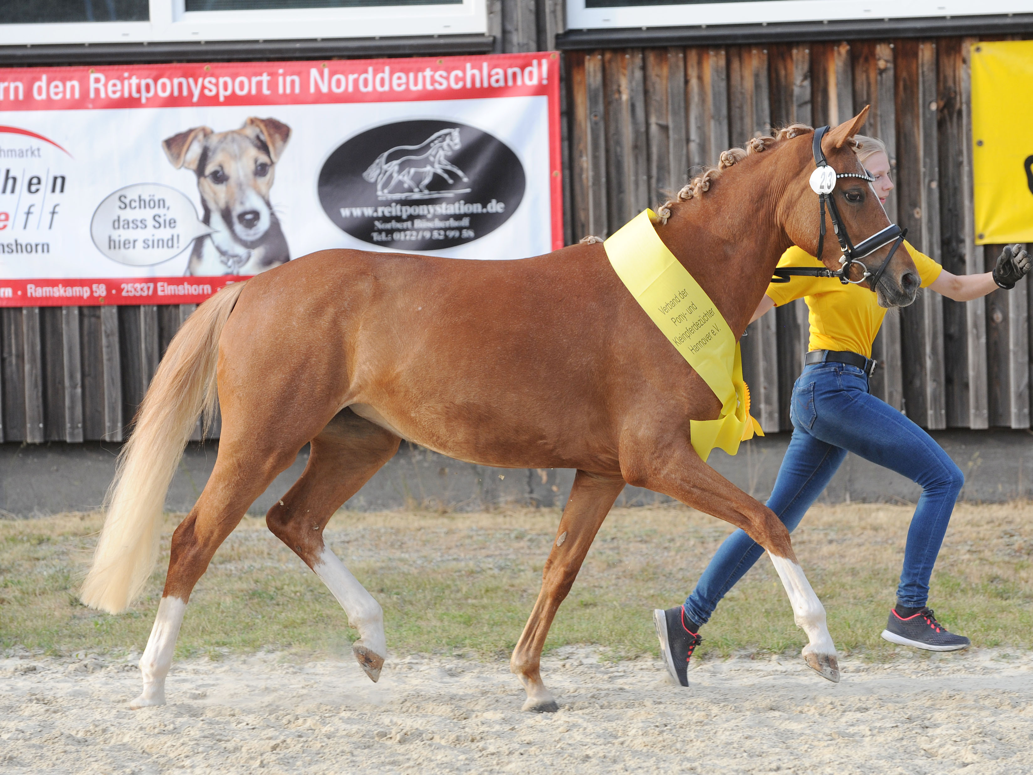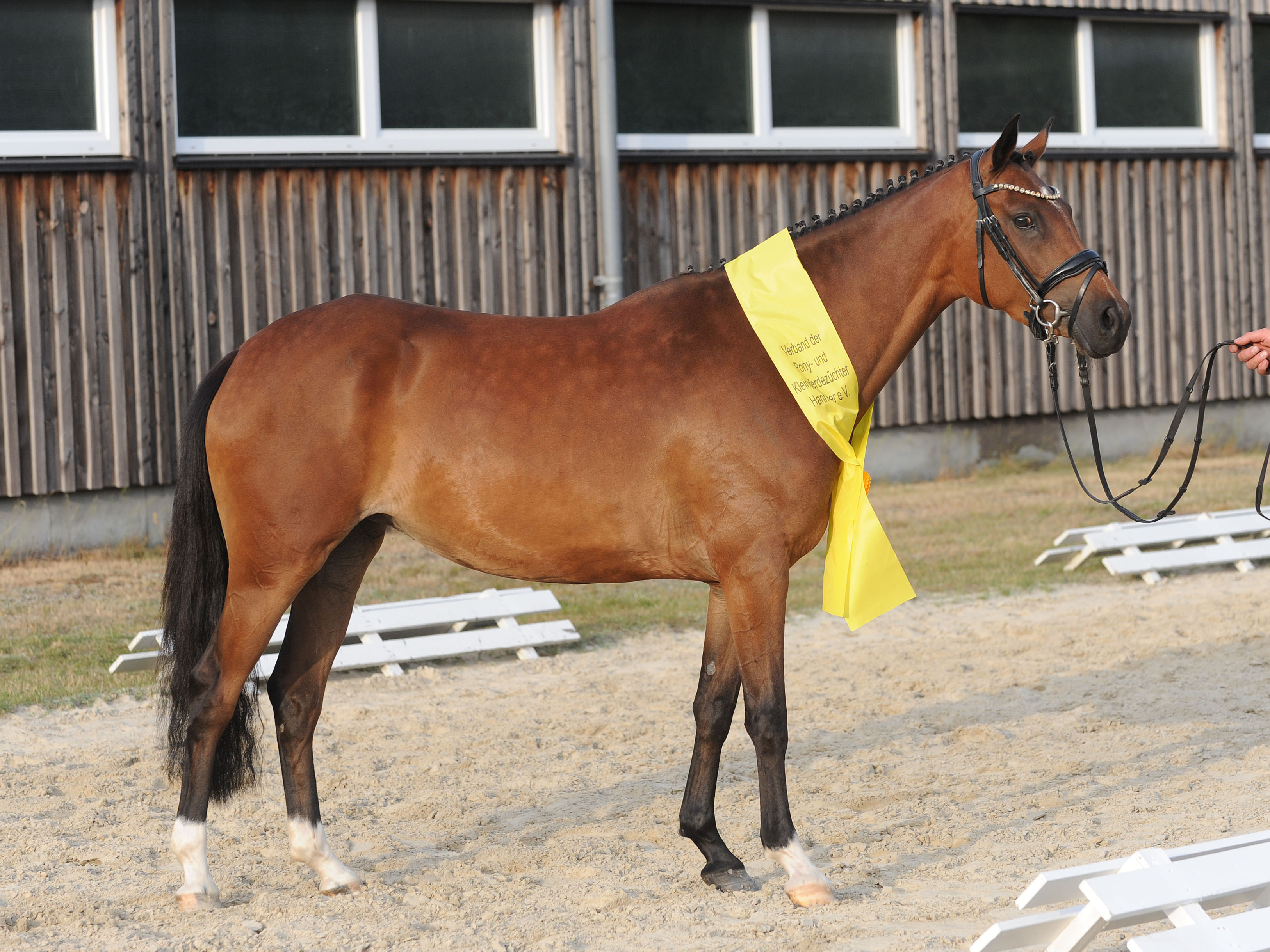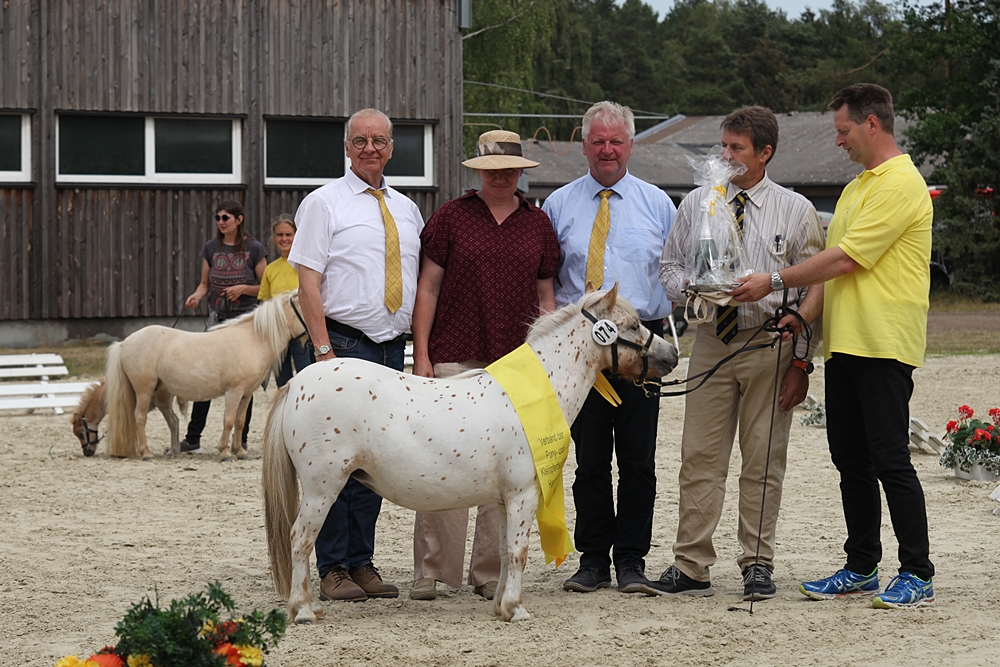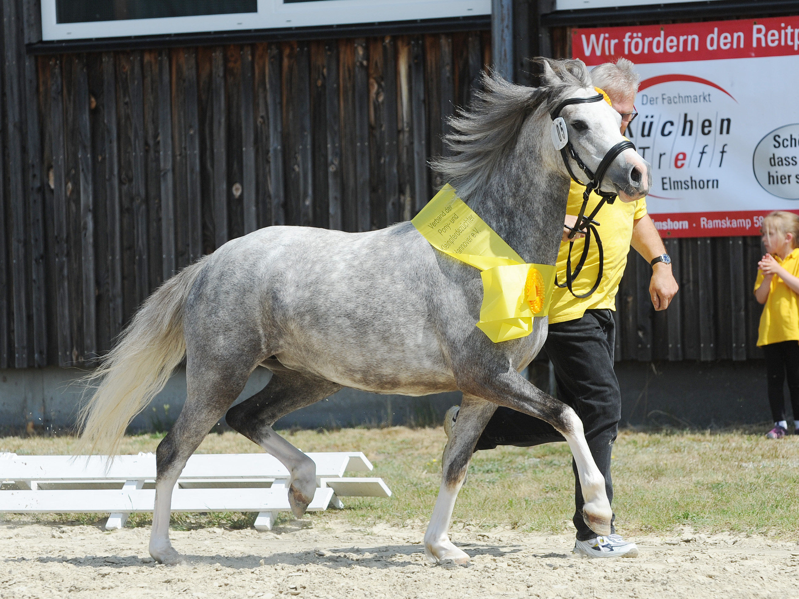 Die Siegerstute Galilahi (86 cm) v. Manitu/Expensive v. Bromishet wurde von dem Züchter Thomas Bormann, Balge vorgestellt.