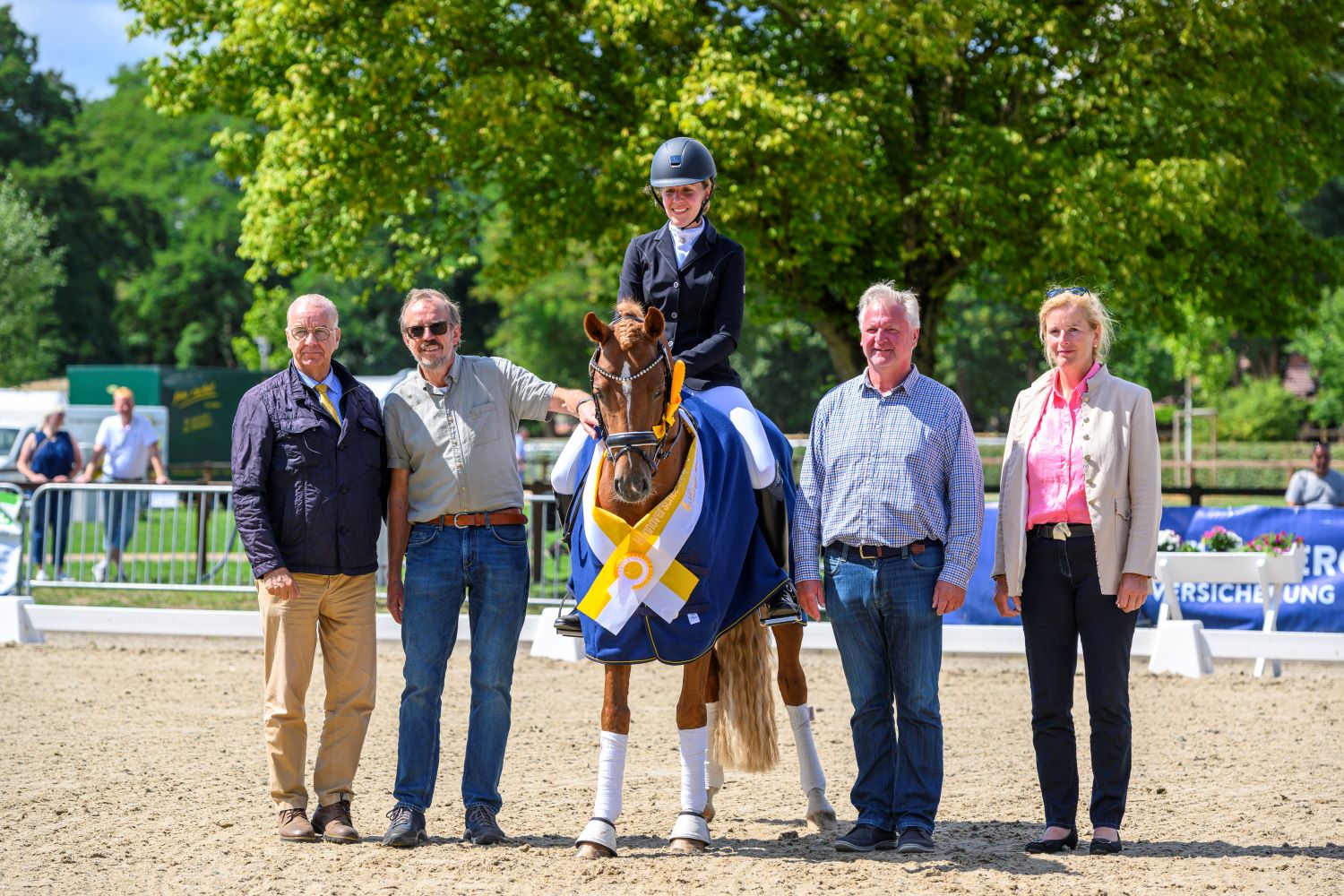 Die letzte Prüfung der Landeschampionate für Ponys wurde vom Verein zur Förderung von Zucht u. Sport mit Hannoverschen Ponys u. Kleinpferden unterstützt. Fünf vierjährige Hengste wurden in dieser Prüfung vorgestellt. An die Spitze stellte sich Nabucco HW v. FS Numero Uno/Don Davidoff aus der Zucht und im Besitz von Claus Wohlers. Unter dem Sattel seiner Tochter Friederike Wohlers erhielt der Landeschampion der vierjährigen Hengste eine Endnote von 7,9.