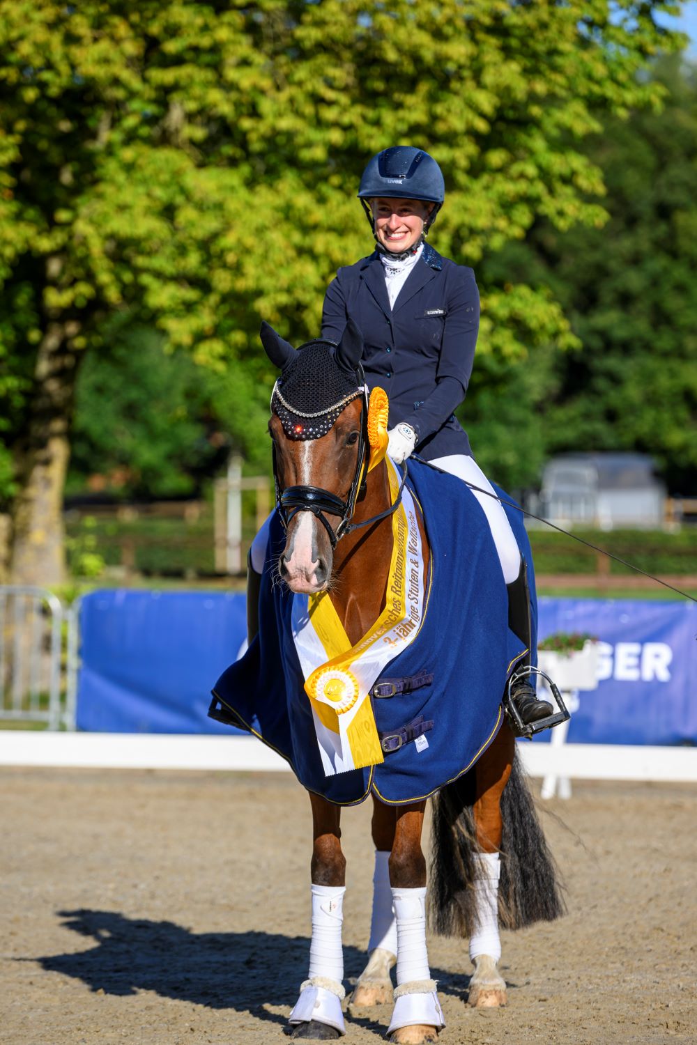 Bodethals Raffinesse v. Dornik-Double(Ransberg’s Dance)/FS Champion de Luxe unter Katharina Tünemann-Rohlfing erreichte den dritten Platz mit der Endnote von 7,9. Die Stute steht im Besitz ihrer Züchter: ZG Mey u. Loewenstein GbR.