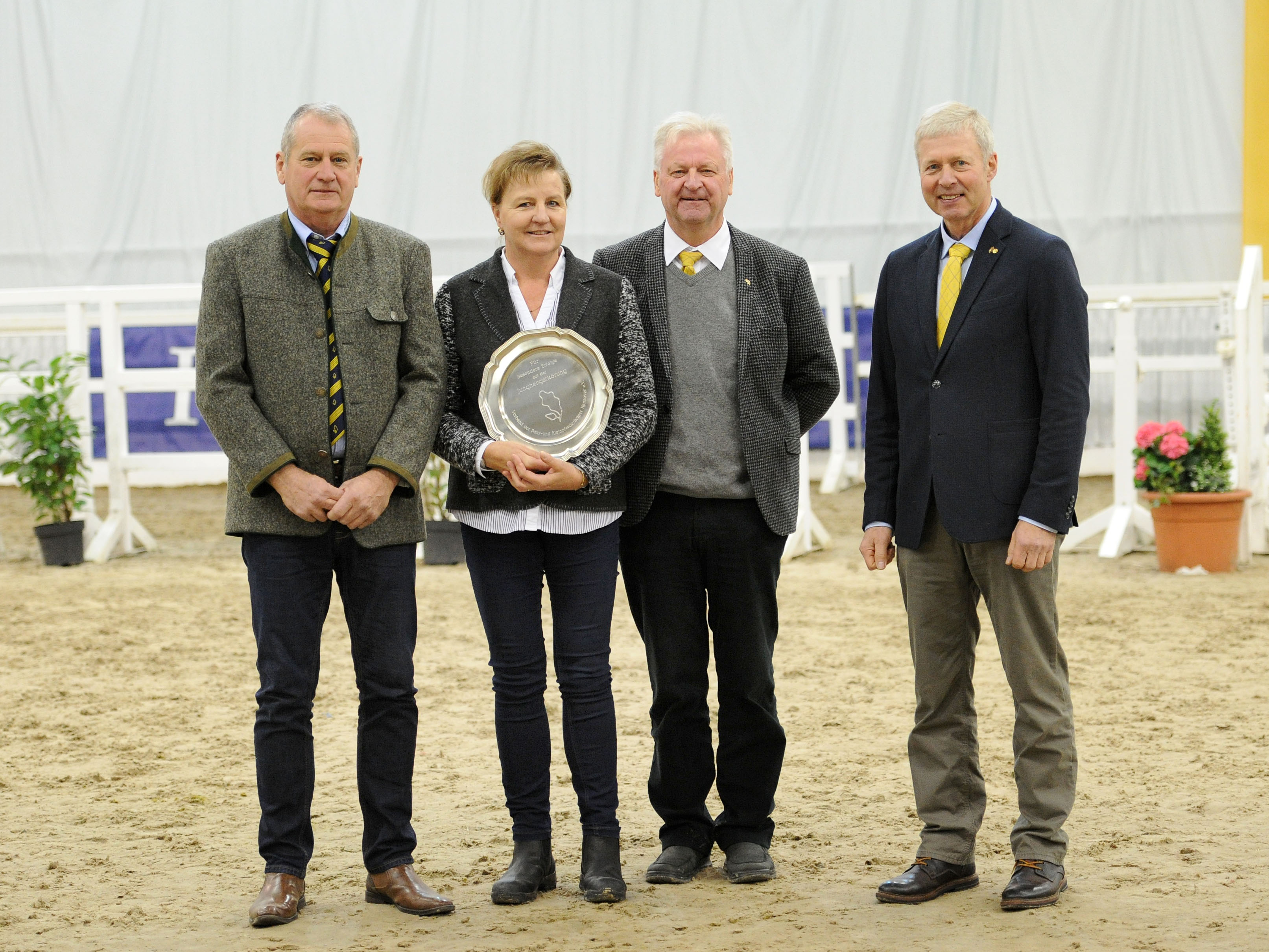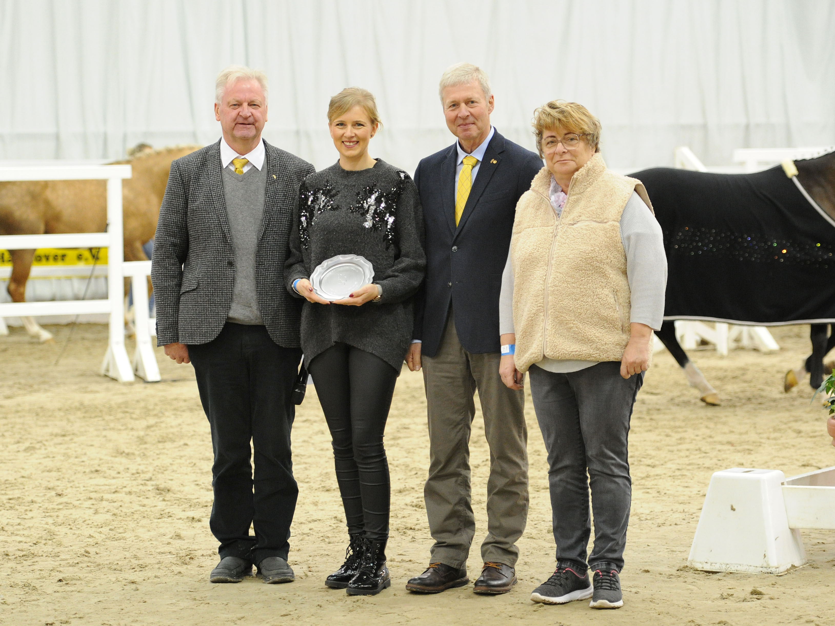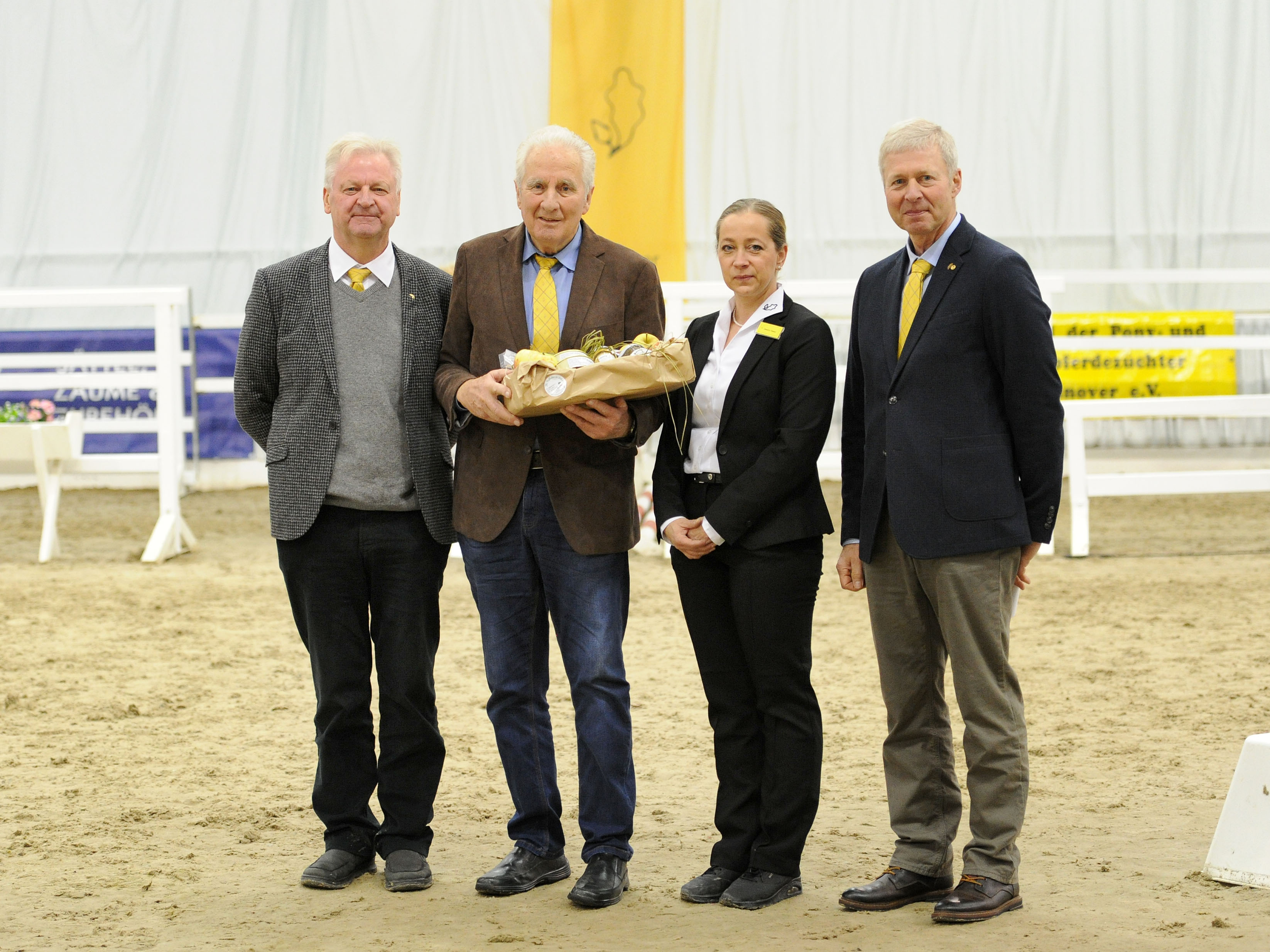 Auf der diesjährigen Körung erhielt die ZG Wallays den Preis für erfolgreiche Hengsthalter. Der „Heinrich-Lampe- Gedächtnispreis“ wurde von Frau Stefanie Lampe an Janna Uellekes, Züchterin des besten selbstgezogenen dreijährigen Ponys bei den Landeschampionaten Bon Coeur U v. Bellissimo HS/Heidbergs Nancho Nova übergeben. Der stellvertretende Vorsitzende Joachim Glienke bedankte sich außerdem mit einem Präsentkorb bei Hans Schumacher für sein langjähriges Engagement in der Ehrengastbetreuung auf Verbandsveranstaltungen.