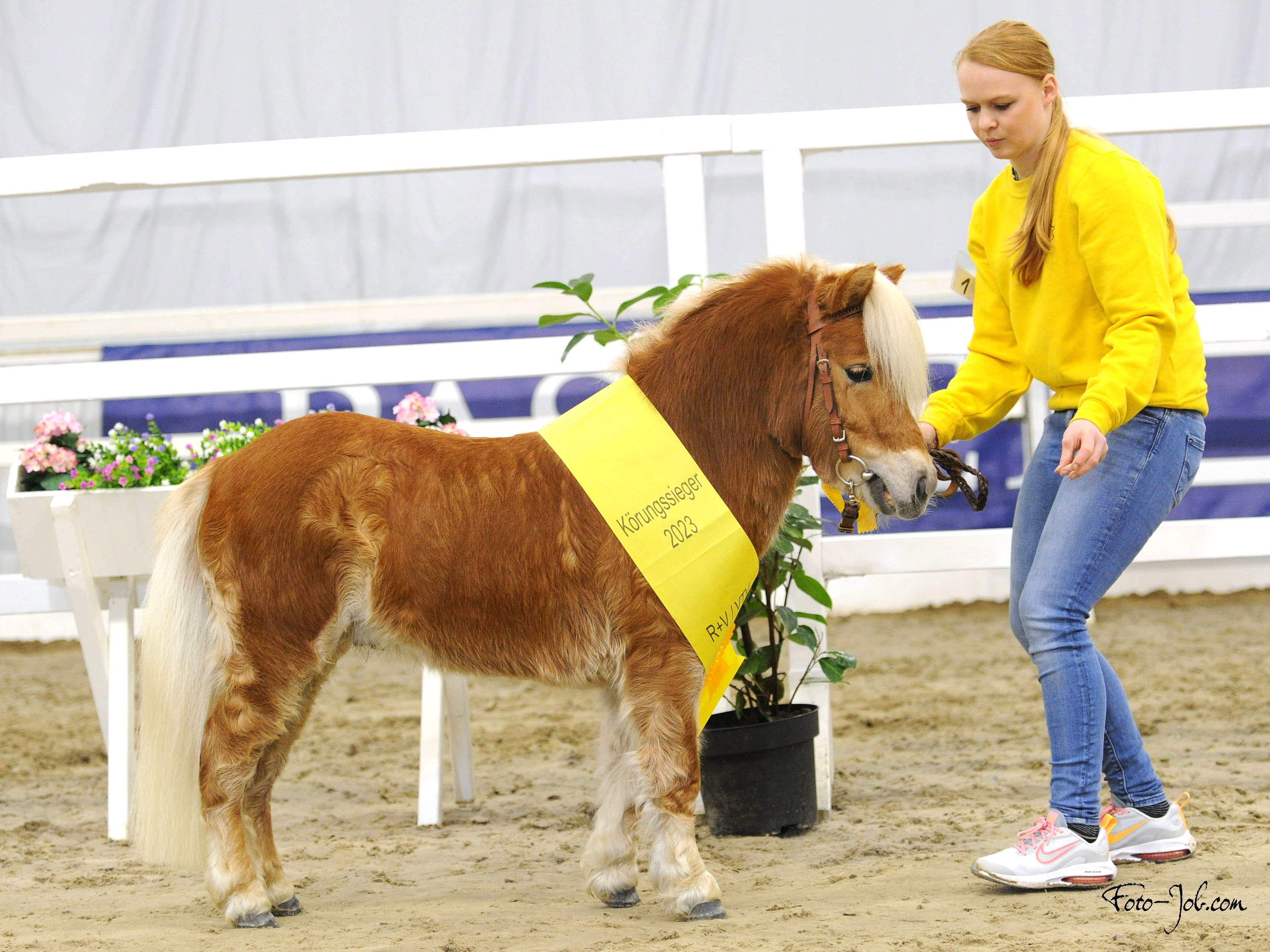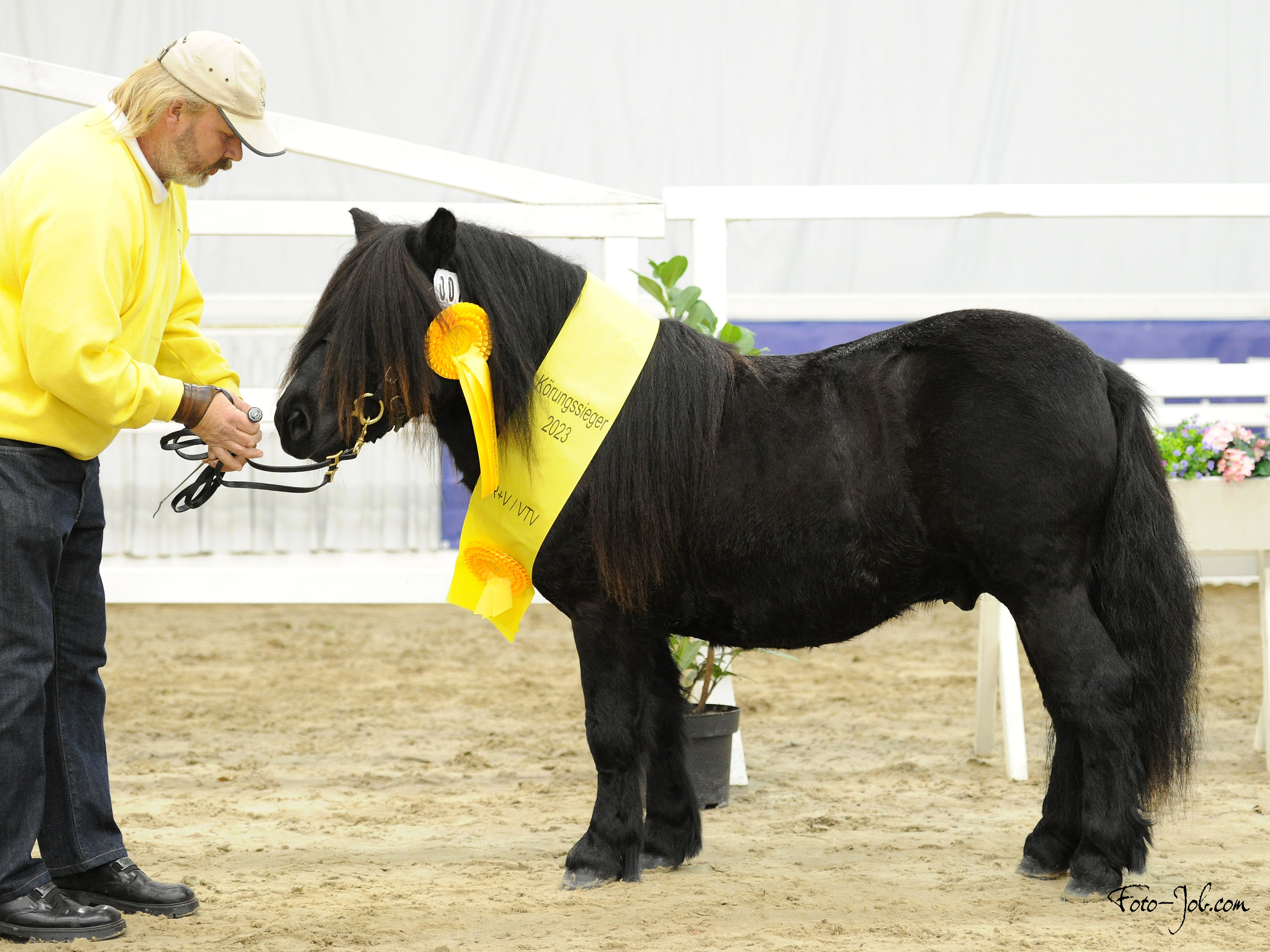 Als einziger Vertreter der Shetland Ponys über 87 cm wurde Nobleman von Lütten Land v. Nuri vom Luetten Land/Söndegards Mac gekört und als Siegerhengst herausgestellt. Der gut im Rassetyp stehende Rappe mit lockerem Trab wurde gezogen und ausgestellt von Nicola Ackermann, Tewel-Neuenkirchen, die mit der silbernen Plakette für besondere züchterische Leistungen der Landwirtschaftskammer Niedersachsen ausgezeichnet wurde.