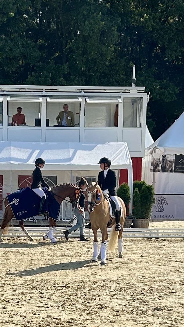 Im Finale der 5-jährigen Dressurponys konnte Bon Coeur U v. Belissimo HS / Heidbergs Nancho Nova unter Mats Buck in der Dressurponyprüfung Kl.L die Wertnote 7,7 erzielen und belegte damit den 6. Platz. Gezogen und im Besitz ist er von Janna Carina Uellekes, Kempen.