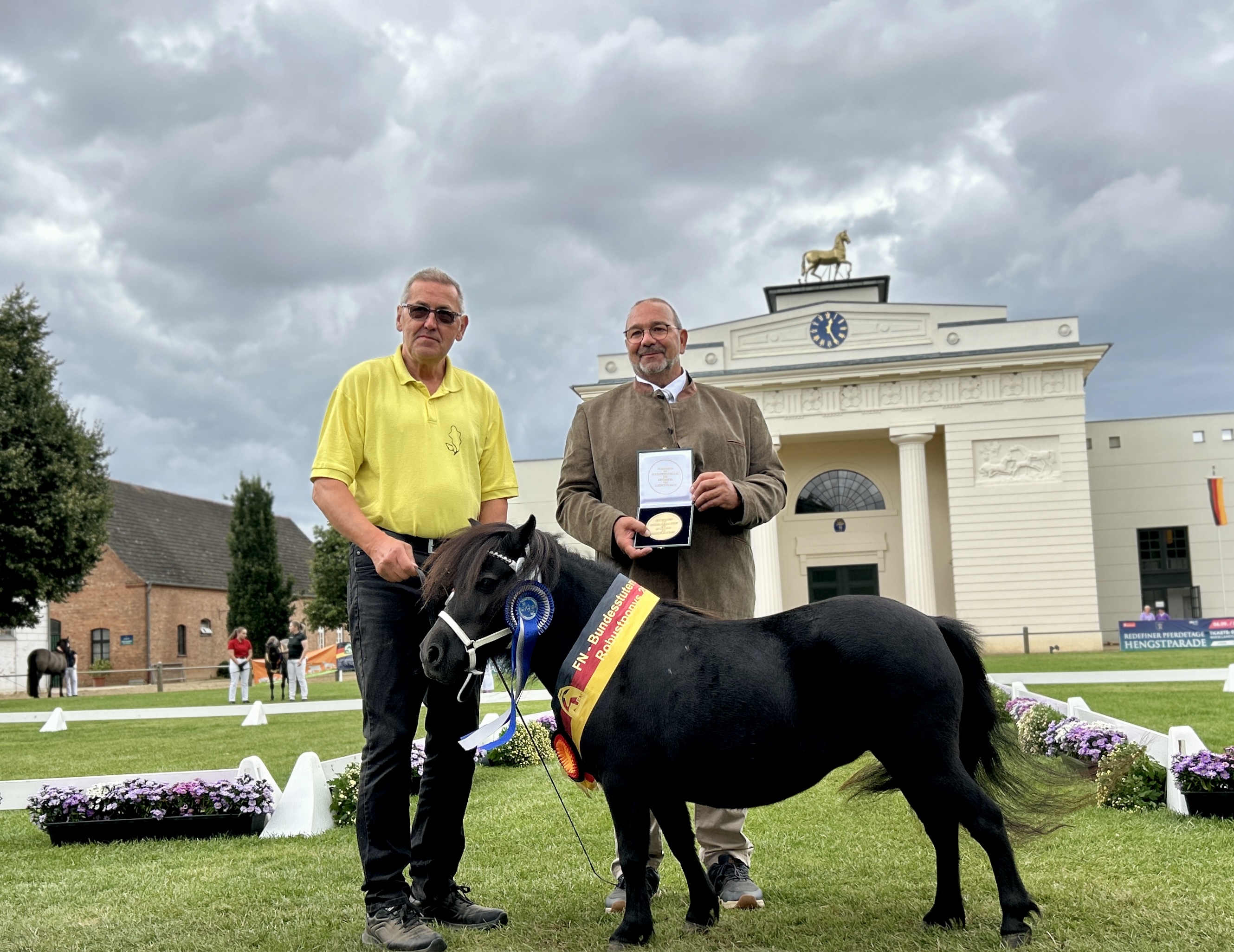 Der FN-Bundessieger bei den Hengsten war der strahlende 25jährige Grandy von Granat, dessen maskuline Erscheinung und natürliche Bergauf-Bewegungen die Richter überzeugten. Züchter von Gandy ist Udo Waldschlaeger aus Fahrbinde und Besitzer Ingolf Zabel aus Ruhner Berge (Zuchtverband für Deutsche Pferde).