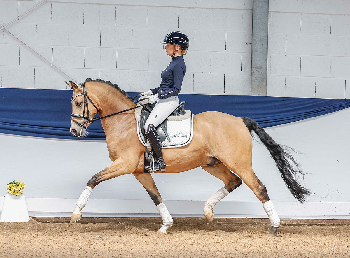 Zur Preisspitze mit 35.000,00€ avancierte der achtjährige Wallach Mr. Riös von FS Mr. Right – Kaiserjaeger xx aus der hessischen Zucht von Hannah Neef aus Mörfelden-Walldorf. Der typvolle Falbe war mehrfacher Bundeschampionatsteilnehmer und ist erfolgreich bis zur Klasse L. Er wird zukünftig bei einer jungen talentierten Reiterin aus Nordrhein-Westfalen beheimatet sein und wird im Dressurviereck weiter vorgestellt.