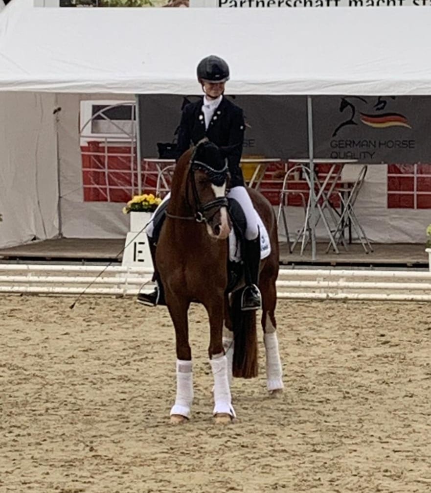 Im Finale der sechsjährigen Dressurponys wurde Melli‘s Darmani v. Da Vinci HS/Dornik B, mit dem neunten Platz (7,3) platziert. Die Reiterin von Diamond Star 18 Philine Katoh verzichtete leider auf eine Bewertung im Finale.