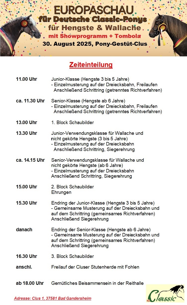 Zeiteinteilung 4. Europaschau für Hengste und Wallache der IG Classic e.V.
