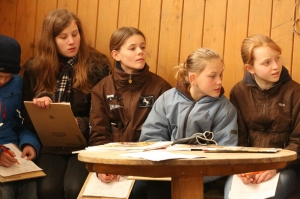 Zwischen den einzelnen Stationen hatten die Jungzüchter immer wieder Gelegenheit, Kontakte zu knüpfen, sich mit Kakao und leckerem Kuchen zu stärken, oder einfach nur fröhlich herumzutoben. Anschließend fiel es wieder leicht, sich auf den nächsten Programmpunkt zu konzentrieren. Und auch an die wartenden Eltern war gedacht, die bei Kaffee und Kuchen einen netten Klönnachmittag verbringen konnten.