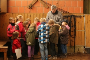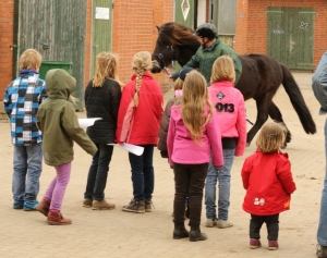 In der theoretischen Fortbildung ging es in diesem Jahr um das Thema Gangpferde. Bernd Wegner, der Vorsitzende des Ponybezirksvereins Hannover, selbst begeisterter Islandpferdezüchter in Auhagen hatte seine zwei Wallache Odin und Dux mitgebracht, mit denen er den Kindern die 4. Gangart dieser Rasse, den Tölt erläuterte.