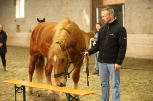 Im theoretischen Teil ging Pferdewirtschaftsmeister Eirik Erlingsen, Gestütsoberwärter im Landgestüt Celle unter anderem auf die Körpersprache des Menschen zur Verhaltensänderung bei Pferden ein. Pferde verfügen zwar über ein hervorragendes Langzeitgedächtnis, aber Neues muss in kurzen Reprisen wiederholt und auch einige Male neu erarbeitet werden, bevor es im Langzeitgedächtnis verankert wird.