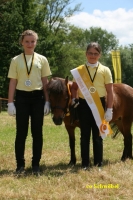 Carina Sophie Bornkessel setzte sich mit der Partbredshetlandstute Erle bei den 10 – 13 jährigen an die Spitze, gefolgt von Elisabeth Schindelhütte(ebenfalls Erle) und Marietta Bartsch mit Olina.