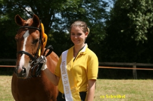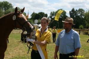 Bei den 14 – 25 jährigen war ebenfalls alles fest in der Hand des BV Hannover. Ayleen George wurde hier Landesmeisterin und Jana Bazdaras folgte ihr als Vizelandesmeisterin. Da beide die höchste und noch dazu identische Punktzahl im Vorführen erhielten, verließen sie das Vorführdreieck an der Hengstprüfungsanstalt zudem mit der Zusatzprämierung der besten Vorführerin.